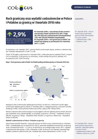 Ruch graniczny oraz wydatki cudzoziemców w Polsce i Polaków za granicą w I kwartale 2018 roku