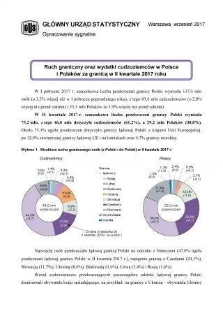 Ruch graniczny oraz wydatki cudzoziemców w Polsce i Polaków za granicą w II kwartale 2017 roku