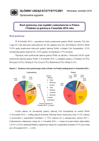 Ruch graniczny oraz wydatki cudzoziemców w Polsce i Polaków za granicą w II kwartale 2016 roku