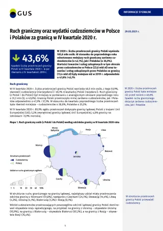 Ruch graniczny oraz wydatki cudzoziemców w Polsce i Polaków za granicą w IV kwartale 2020 roku