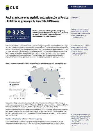 Ruch graniczny oraz wydatki cudzoziemców w Polsce i Polaków za granicą w IV kwartale 2018 roku