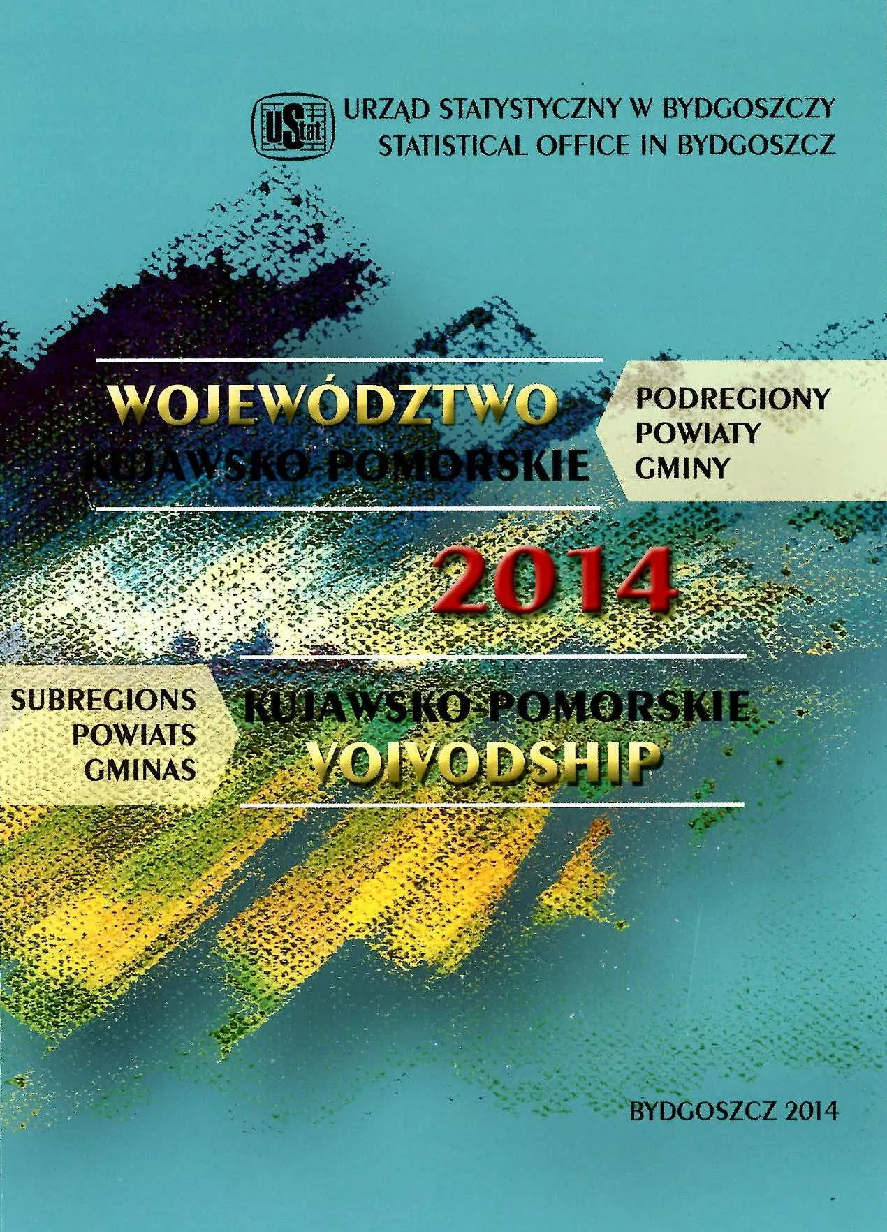 Publikacja zawiera zestaw danych statystycznych charakteryzujących sytuację społeczno-gospodarczą województwa kujawsko-pomorskiego w ujęciu przestrzennym, tj. w podziale na gminy, powiaty i podregiony. Zakres informacyjny publikacji został zmieniony w stosunku do wydania ubiegłorocznego w wyniku standaryzacji wszystkich roczników wojewódzkich. W tablicach przeglądowych rozpoczynających publikację zaprezentowano ważniejsze dane o województwie za lata 2000, 2005, 2008-2013, oraz wybrane dane o podregionach i powiatach w latach 2005 i 2013. Tablice zasadnicze, zebrane w 16 działach tematycznych, uzupełniono kartogramami i kartodiagramami.