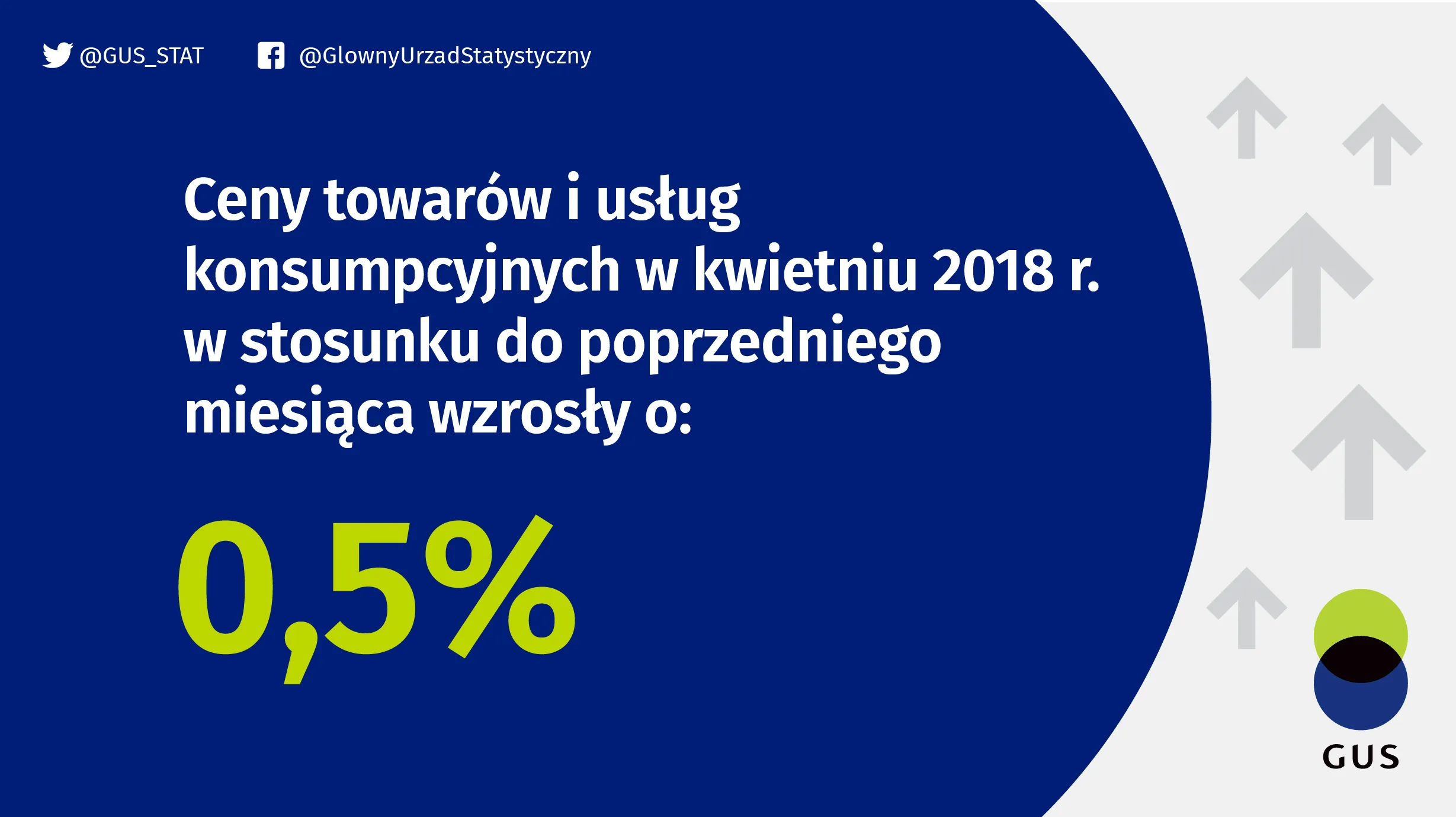 Ceny towarów i usług konsumpcyjnych w kwietniu 2018 r. w stosunku do poprzedniego miesiąca wzrosły o 0,5% (w tym towarów – o 0,6% oraz usług – o 0,3%). W porównaniu z analogicznym miesiącem ub. roku ceny towarów i usług konsumpcyjnych wzrosły o 1,6% (w tym usług – o 1,7% i towarów – o 1,5%).
